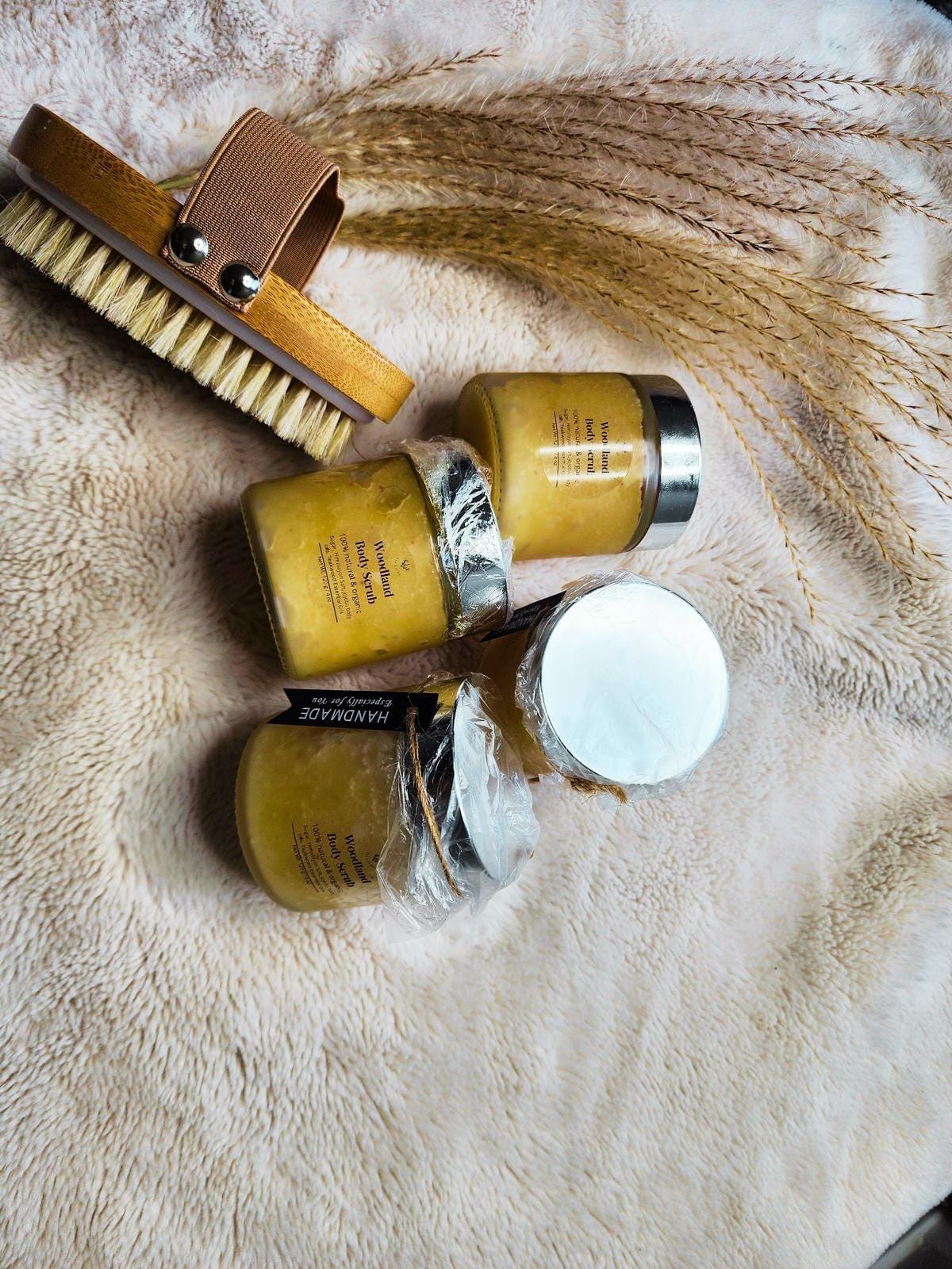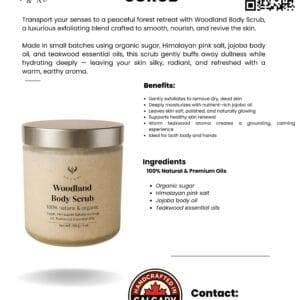 Our Woodland Resin Body Scrub is a handcrafted, small-batch exfoliator with a rare, earthy-woody scent blend you won’t find anywhere else. Infused with Himalayan salt, sugar, and premium oils like jojoba and evening primrose, this scrub doesn’t just polish your skin—it nourishes, hydrates, and leaves behind a grounding resinous aroma that feels indulgent and restorative.
